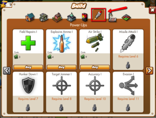Potenciadores son elementos de un solo uso Lucha contra la que puede aumentar sus unidades, debilitar a las unidades enemigas, o hacer daño a las unidades enemigas. Powerups se pueden comprar en el menú Generar: